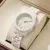 With a case diameter of approximately 1.5 inches, a band length of around 6.7 inches, and a slim 0.4-inch case thickness, this watch is designed to flatter the female wrist without being bulky. Please note that the watch is not waterproof and can only handle light splashes — perfect for dry, everyday wear.