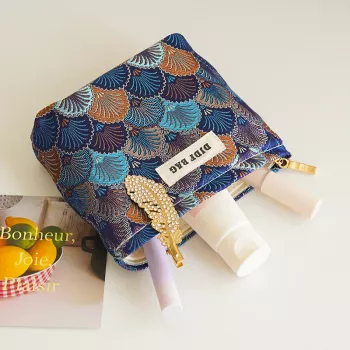 Blue Geometric Cosmetic Bag – Small Zipper Travel Pouch for Makeup & Jewelry