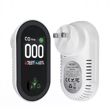 3-in-1 Carbon Monoxide Detector with Temperature & Humidity Display, Plug-In Alarm