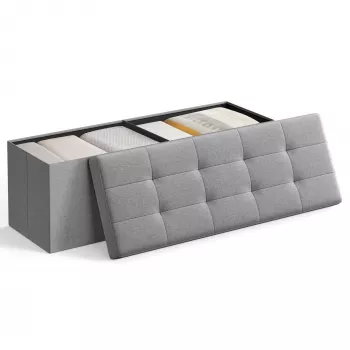 43″ Folding Storage Ottoman Bench with Tufted Linen Look and Large Capacity