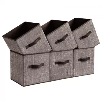 Set of 6 Foldable Fabric Storage Bins with Double Handles