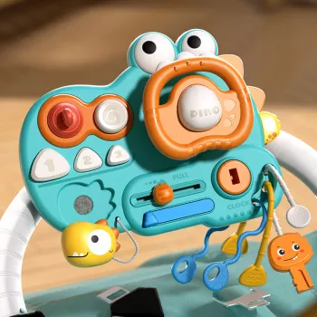 Baby Dinosaur Sensory Steering Wheel Toy – Montessori Teether & Travel Activity